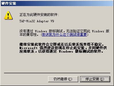 问题描述:安装时,Windows系统会弹出如下图所示的驱动徽标确认提示框,询问用户是否安装虚拟网卡驱动。